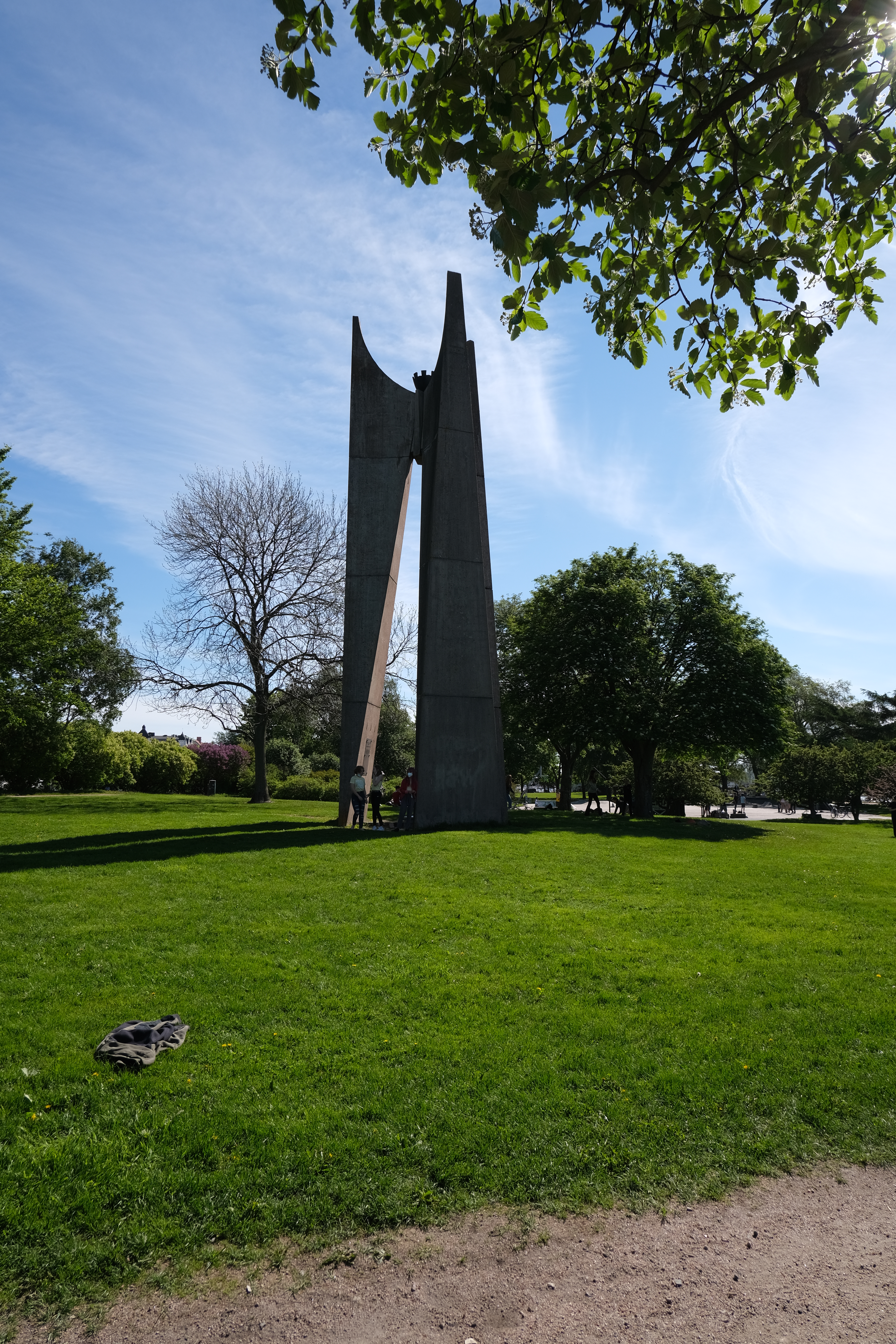I’ll pick up where I left you, which would be Sunday. Jascha went for another long climbing session with Max which gave Frida and me another opportunity to go and play tourists. I still wanted to visit the Sibelius monumentti and there was that neighbourhood that seemed worth exploring as well. Not to forget the Airbnb that we stumbled onto when searching for placed to stay in Helsinki originally. The whole listing was as communistic as it gets and the pictures seemed to be take in an apartment that never quite left the Russian influenced Finland behind. Since the building was located in the neighbourhood we wanted to visit anyway we put it onto our lists of things to see that day. So, after breakfast we headed out, getting the bus to the Sibeliuksen puisto, a park named after the composer who’s music I just adore. After a short walk we made it to the monument. It’s quite a mesmerising sight in my eyes, especially compared to the little metal depiction of Sibelius next to it which just looks horrendous.